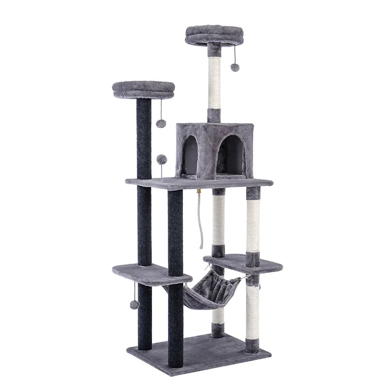 H164CM Luxury Cat Tree with Condo Hammock Tall Cat Tower for Indoor Cat Scratcher Scratching Post for Cat House Spacious Perch